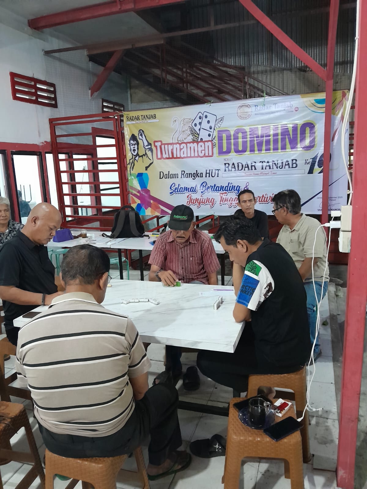 Kegiatan turnamen domino ini dilaksanakan di Murni Kota Jambi, Tepatnya Di Kopi Tiam Murni 99.
