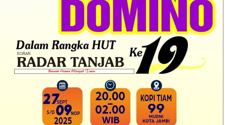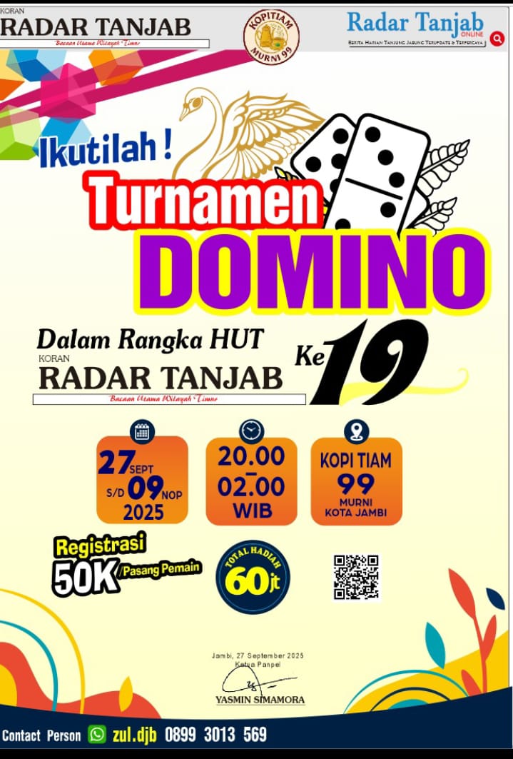 Sementara itu Pelaksana Turnamen Domino RADAR TANJAB tahun 2025 Zulkifli mengatakan, turnamen domino Ini resmi dibuka mulai dari tanggal 27 September sampai dengan 29 Oktober 2025. “Even ini kita buka umum. Jadi siapapun bisa main baik yang berada dalam Provinsi Jambi hingga luar Provinsi Jambi.