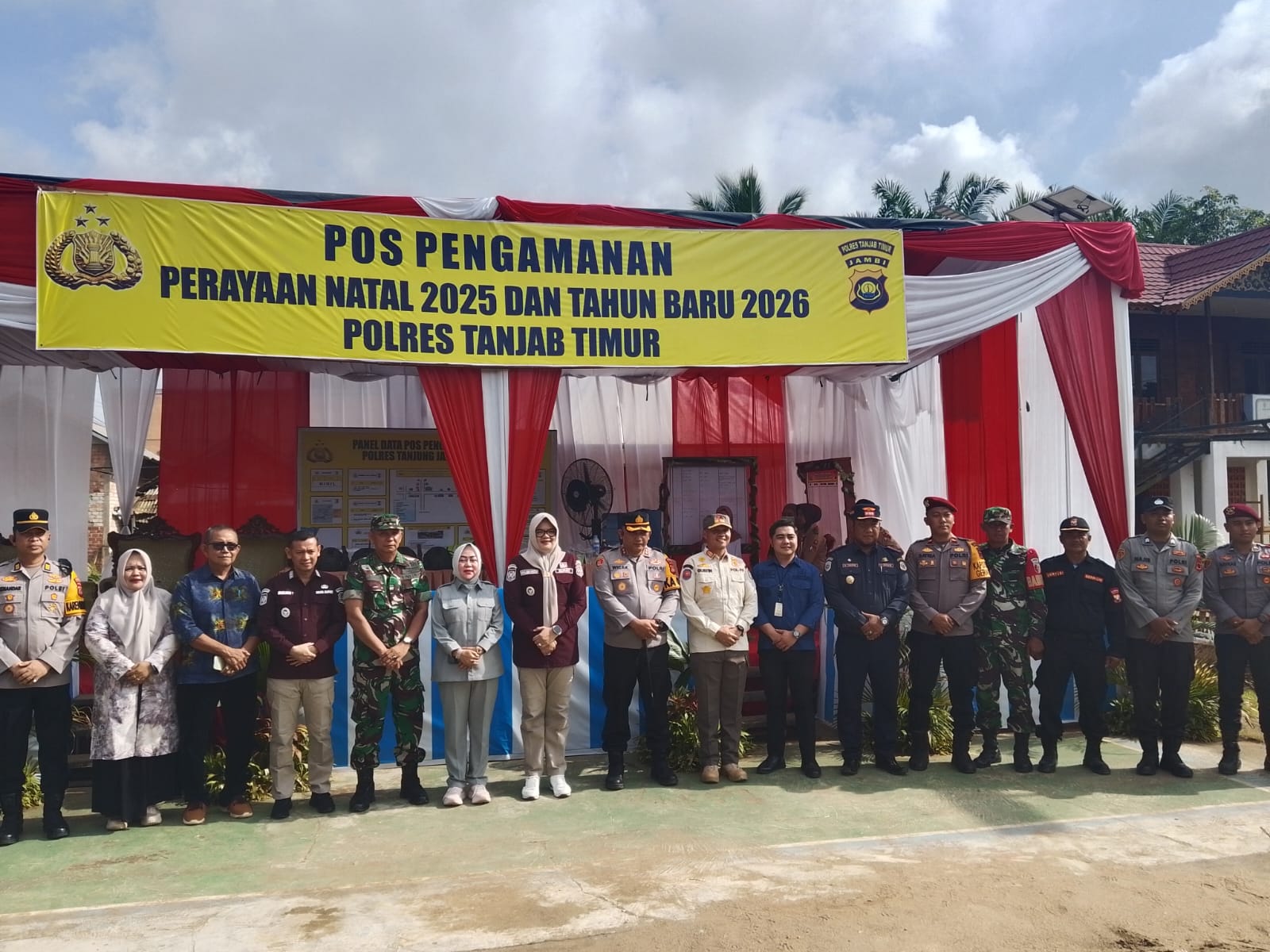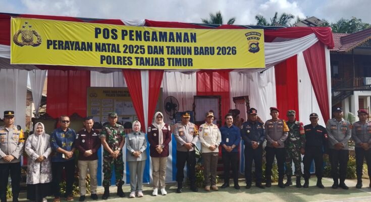 Detiknews.co|Tanjab Timur – Pemerintah Kabupaten Tanjung Jabung Timur menunjukkan komitmennya dalam menjaga keamanan dan kenyamanan masyarakat selama perayaan Natal 2025 dan Tahun Baru 2026. Bupati Tanjab Timur bersama Wakil Bupati didampingi unsur Forkopimda serta sejumlah Organisasi Perangkat Daerah (OPD) melakukan peninjauan langsung ke sejumlah Pos Pelayanan dan Pos Pengamanan Natal dan Tahun Baru (Nataru), Kamis (25/12/2025).