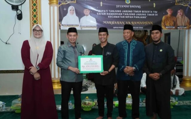 Detiknews.co|Tanjab Timur – Memasuki hari kedua bulan suci Ramadan, Bupati Tanjung Jabung Timur Hj. Dillah Hikmah Sari bersama Wakil Bupati Muslimin Tanja melaksanakan kegiatan Safari Ramadhan di Desa Pemusiran, Kecamatan Nipah Panjang, Sabtu (21/02/2026).